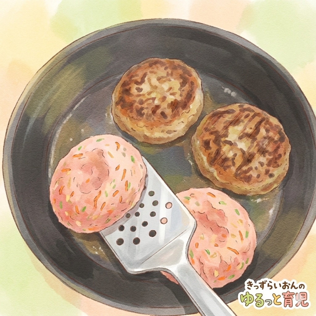すりおろし野菜のふわふわハンバーグ(食感を消す)
