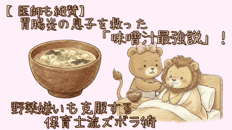 今日は、私の長男(当時3歳)が胃腸炎でダウンした時に、病院の先生から言われた**「衝撃の一言」と、そこから私が学んだ「味噌汁最強説」**についてお話しします。