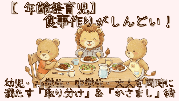 【年齢差育児】食事作りがしんどい!幼児・小学生・中学生・大人を同時に満たす「取り分け」&「かさまし」術
