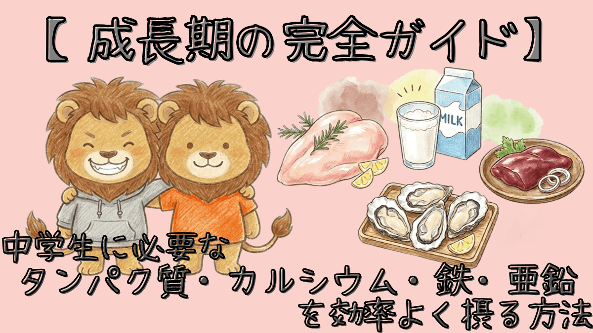 - 中学生は成長のピーク期。タンパク質・カルシウム・鉄・亜鉛の4つが特に重要