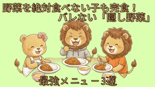 食事・栄養 【保育士ママ直伝】野菜を絶対食べない子も完食!バレない「隠し野菜」最強メニュー3選 2025年12月27日 らいおんmama きっずらいおんのゆるっと育児|子育て便利グッズ・時短ワザ・育児の悩み解決ブログ